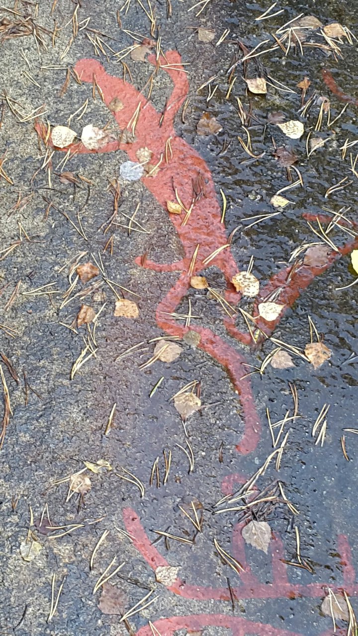 Må bare presisere med en gang, dette bildet er lånt, googlet på, siden jeg ikke tok bilder den gangen jeg var og så helleristninger, for et par/ tre år siden. Jeg gikk et godt stykke, på en nokså dårlig vedlikeholdt sti, opplevde jeg, før jeg kom til den store attraksjonen. Ja, sånn tenkte jeg da, med en viss ironi, siden det var vanskelig å få øye på noe særlig. Og, spesielt flinke til å tegne var de jo ikke, disse tidlige menneskene, formene må jo sies å være veldig enkle. Det er morsomt å se hva det er forsket fram til, i forhold til hvordan menneskene tenkte da, og hva disse tegningene skulle fortelle. Med de ironiske brillene på, blir disse forklaringene også nokså morsomme, i tillegg til tanken om at de egentlig ikke var så flinke til å tegne. Men, idet jeg legger til side fjåset, og ser på dette her som det spennende fenomenet det faktisk er, da blir det noe annet.