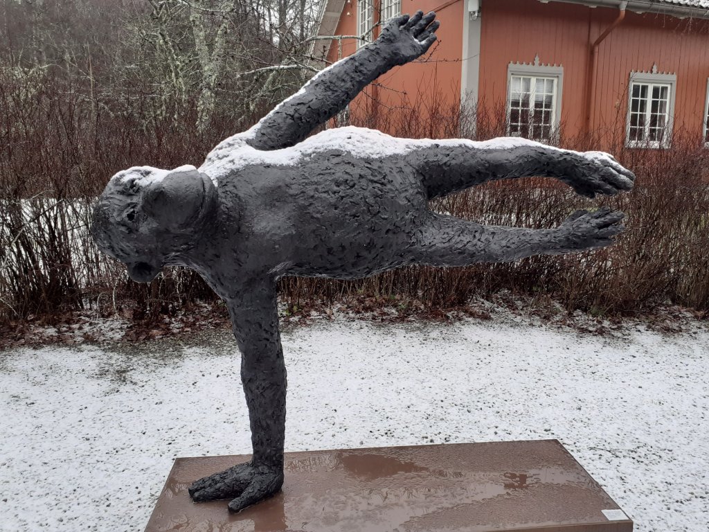Spørsmålet som lurer er hvor lenge, hvor lenge klarer denne apen å stå sånn? Egentlig ikke så mye å lure på kanskje, siden det er en solid skulptur, men om det overføres..