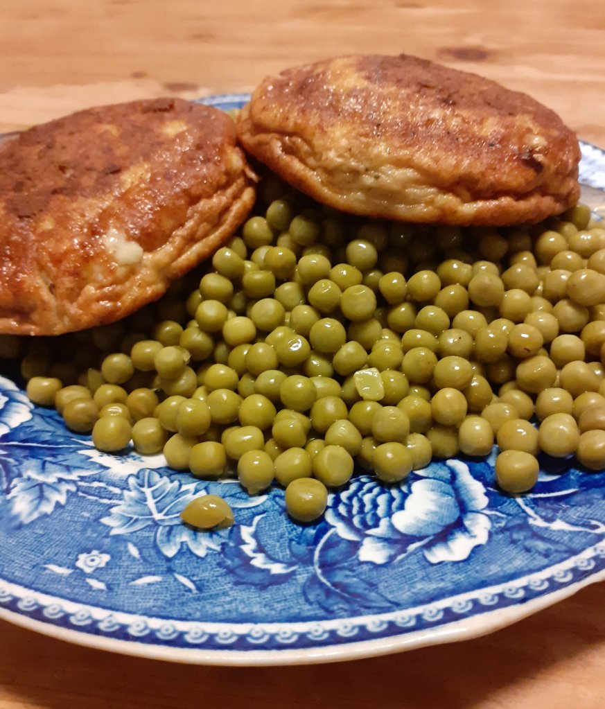 Ikke for å skryte, men i dag følte jeg meg nærmest litt sprelsk, og hadde det gøy da jeg danderte fiskekakene på en seng av erter. Fiskekaker fra Kiwi – altså ikke hjemmelaget – det har jeg knapt nok gjort, og hermetiske erter. Da er jeg litt norsk gormet (gjerne med innlandsaksent), og smiler og spiser solo.