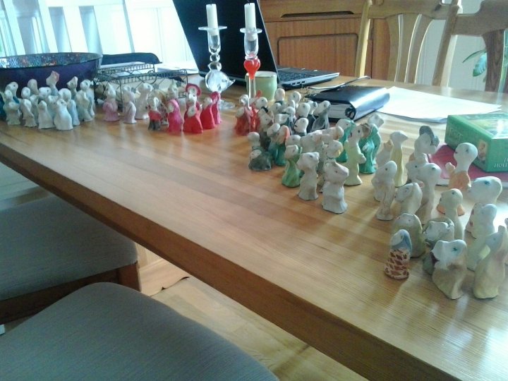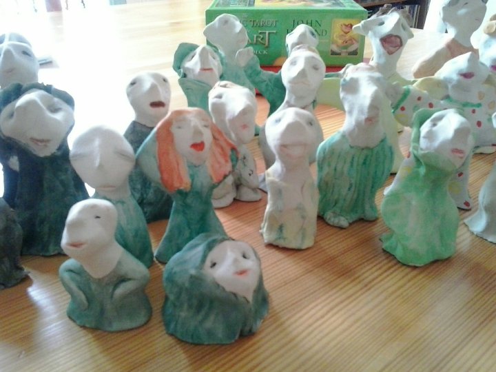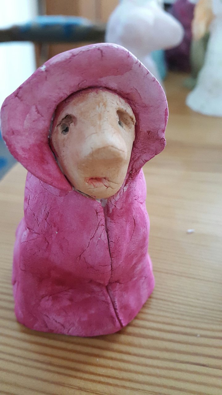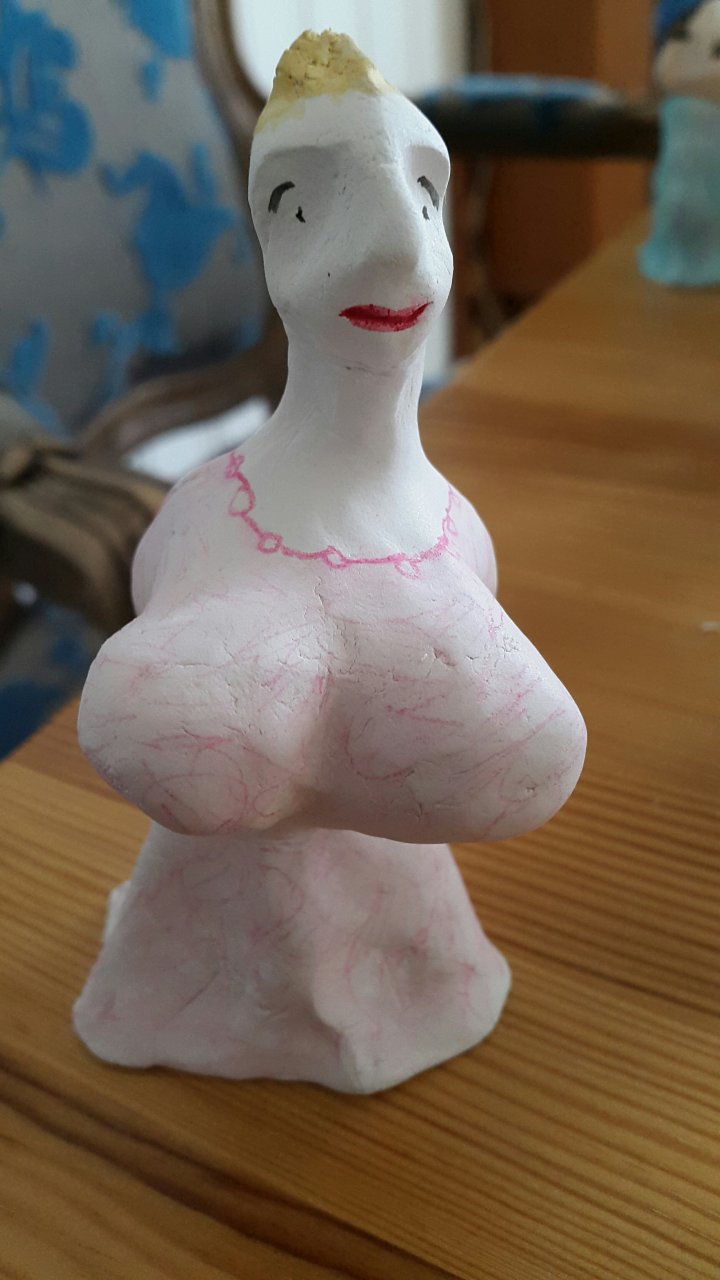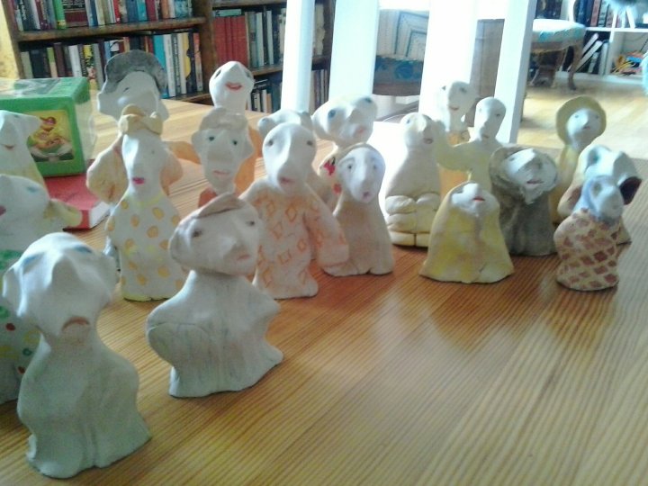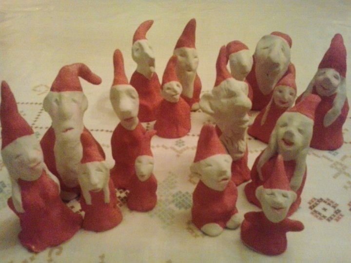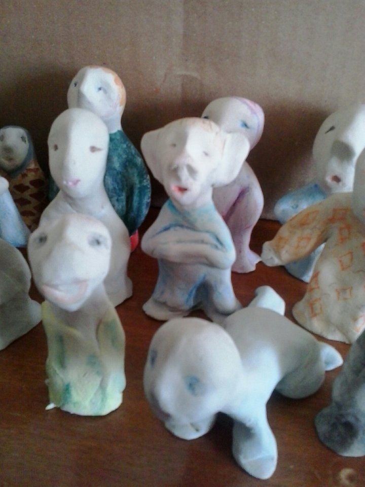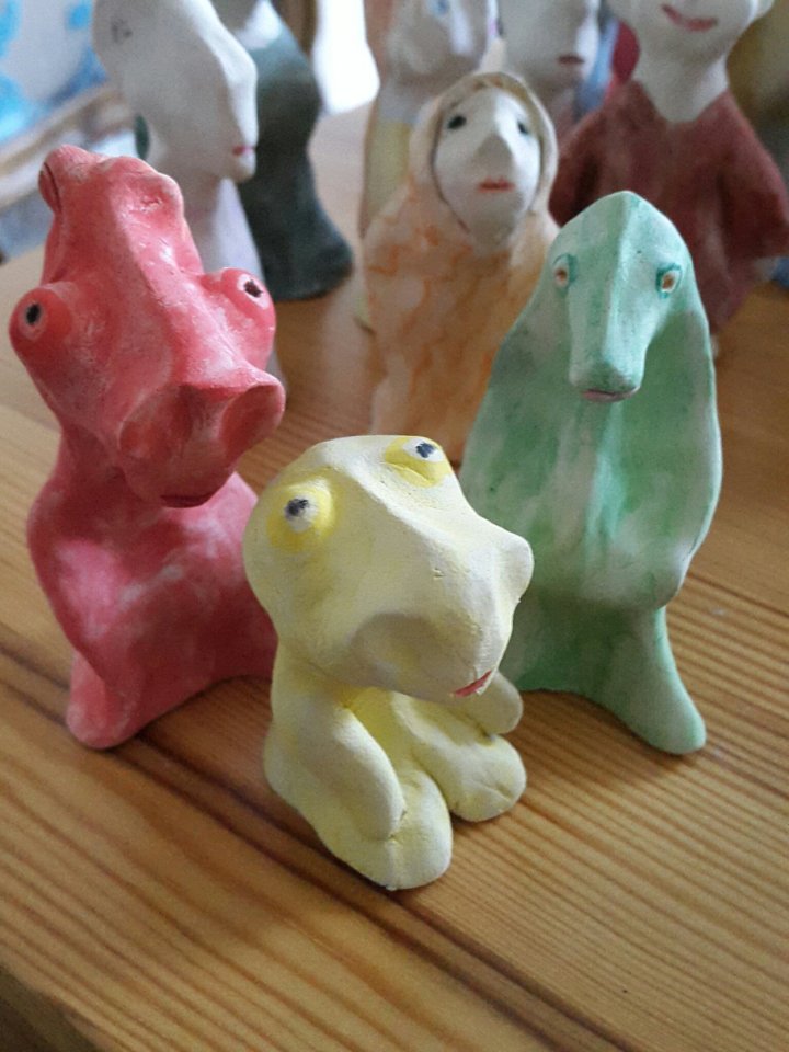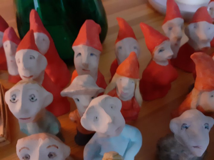 Jeg var i Berlin for noen år siden, og gikk på Kate Kollwitz museet. Der så jeg mange flotte statuer, hun var utrolig god til å uttrykke seg tredimensjonalt. Det var inspirerende. Ideen til å lage millioner av ulike leirefigurer var tent. Jeg sammenlikner meg ikke med henne, men lot meg inspirere! Det må være lov…Konseptet mitt er å skape typer som har noe å si deg som tilskuer. Om det bare er en som taler til deg er målet nådd. Lykken er å få fram følelser i observatøren. Er det noen som passer for deg?God fornøyelse.Figurene selges i butikken til skomakerne i Gamlebyen, i Gamle Fredrikstad.